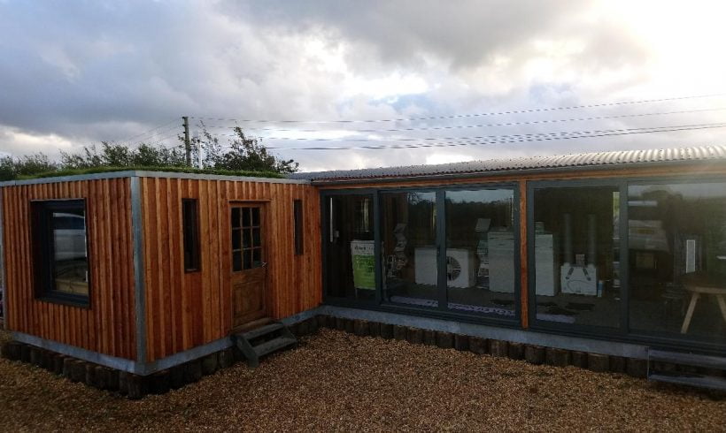 Our showroom is a bespoke made eco-building, made completely from recycled materials. It is a working example of what can be achieved using renewable technologies and is fundamentally a completely off grid entity, free of all grid connections. Here you can see working examples of a solar pv and battery storage system providing all our electricity needs, as well as a purified rainwater harvesting system, providing all our water needs, and an operational renewable heating system comprised of a thermal store, and air source heat pump, a biomass pellet boiler, as well as working heat recovery system.